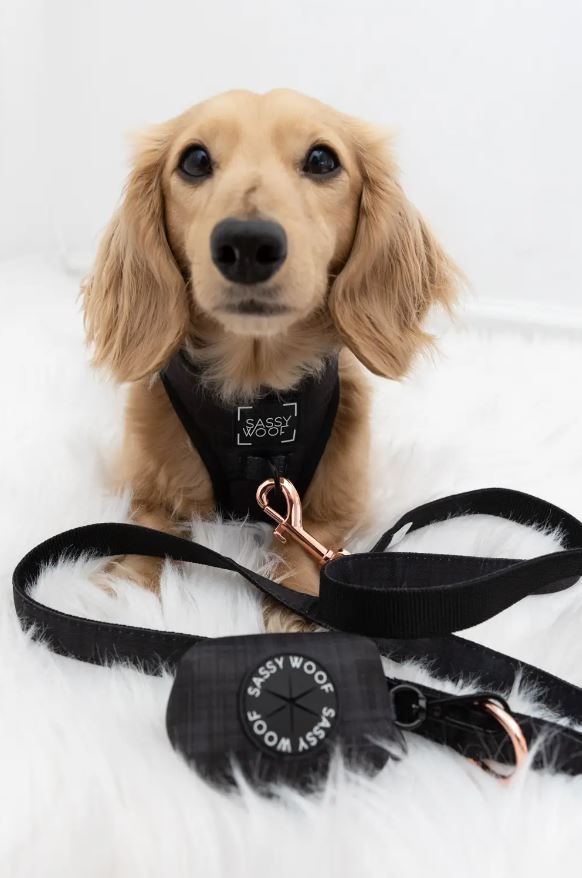 Pair this harness with our matching collar, leash, and waste bag holder for the complete look!