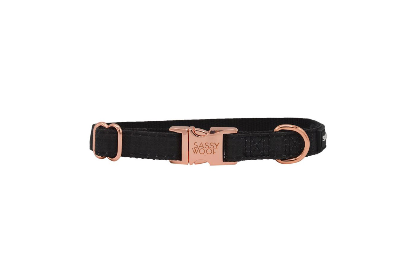 Walk in style with our beautifully crafted ‘Baby got Black’ Collar, featuring a Sassy Woof original design. This collar also features classy rose gold hardware. This is a fully adjustable collar made with neoprene material for extra comfort for your pup.