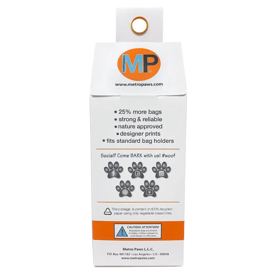 Each roll contains 20 designer, degradable bags, and with 5 color schemes.
